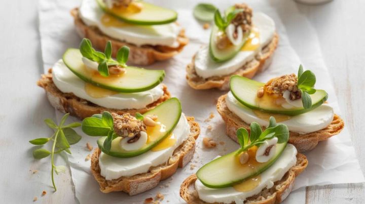Des tartines poire, roquette et fromage frais à découvrir