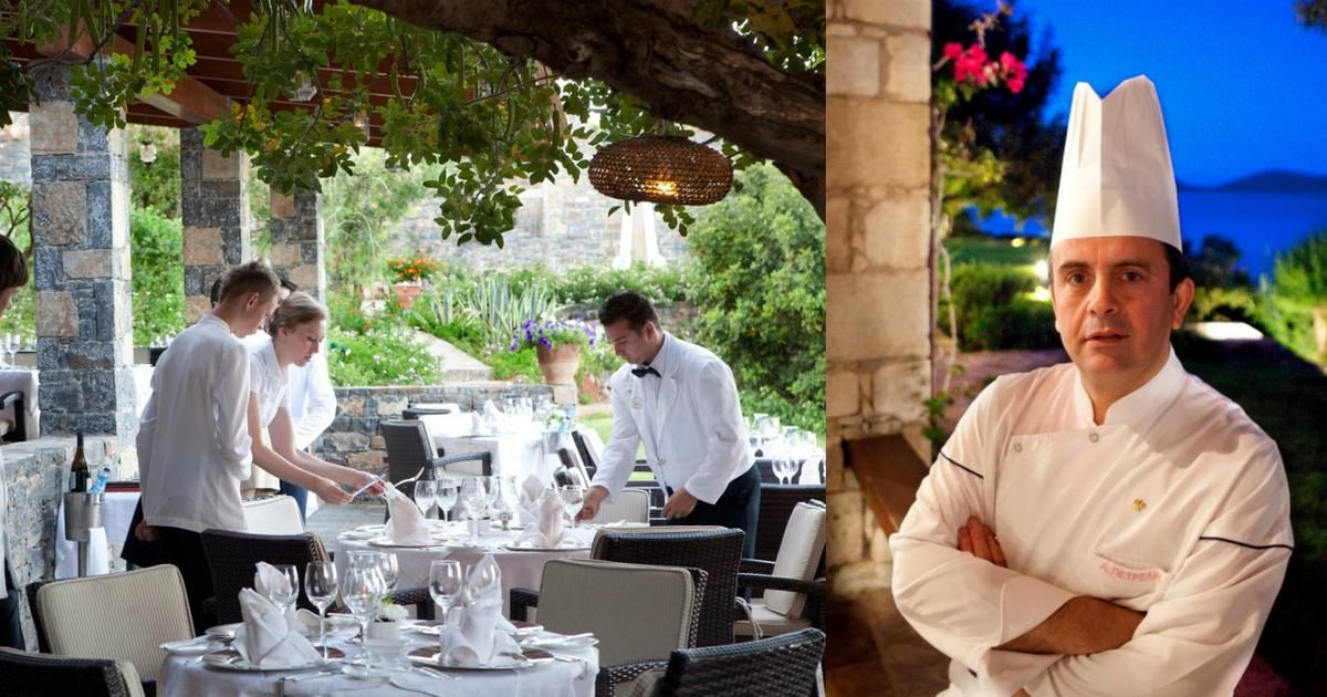 Le chef Antonis Petrellis vous transporte dans un voyage culinaire unique, avec des plats crétois élaborés à partir de produits frais et locaux. Fort de son expérience internationale, il réinvente la tradition avec finesse et légèreté, mettant en avant les récoltes des vergers et potagers environnants. S'ajoute à cela une carte composée de poissons fraîchement pêchés et de légumes de saison.