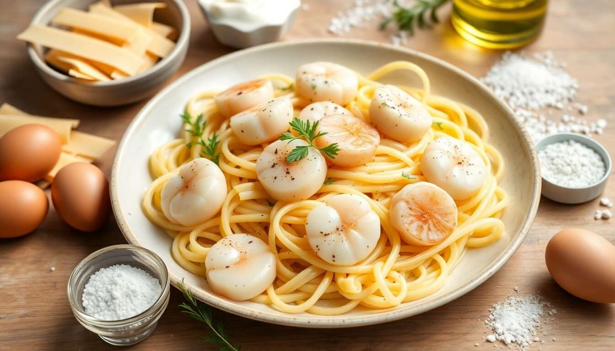 Ce plat de tagliatelles aux noix de Saint-Jacques évoque les régions côtières d'Italie, où les fruits de mer sont souvent mis à l'honneur dans des préparations simples et délicieuses.