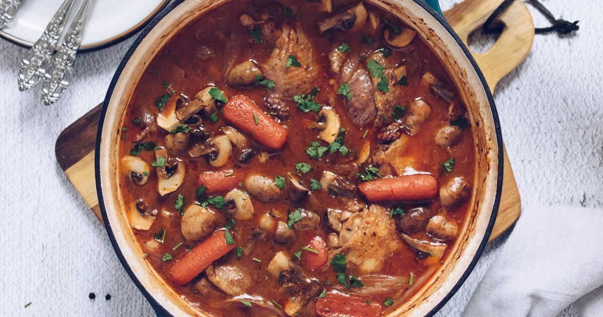 Pour préparer ce plat, il suffit de faire revenir les morceaux de poulet dans une cocotte, d'ajouter les légumes et de laisser mijoter avec le vin tout en assaisonnant avec les herbes. En quelques étapes simples, vous obtiendrez un plat réconfortant parfait pour les repas en famille.