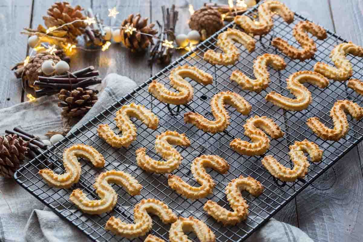 Ce sont de sablés croustillants, typiquement façonnés en S, que l’on prépare habituellement avec un hachoir à viande. En effet, la pâte, plus épaisse, se prête mal à un pochage avec une poche à douille, même si cela reste une option. À l'époque, nos grands-mères s'aidaient de hachoirs en métal – maintenant, pour ma part, j’opte pour un Adaptachef Tupperware, qui facilite vraiment la tâche avec ses différentes sorties pour biscuits.