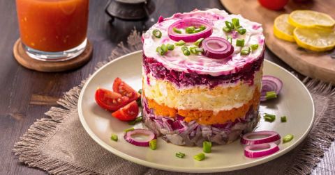 - Avant de servir, rincez le saumon et découpez-le en tranches. Décorez avec des pluches d’aneth et des baies roses.