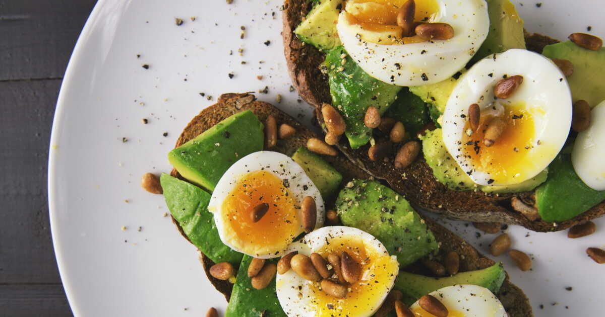- Disposez l’avocat sur le pain grillé, ajoutez les œufs pochés et servez immédiatement.
