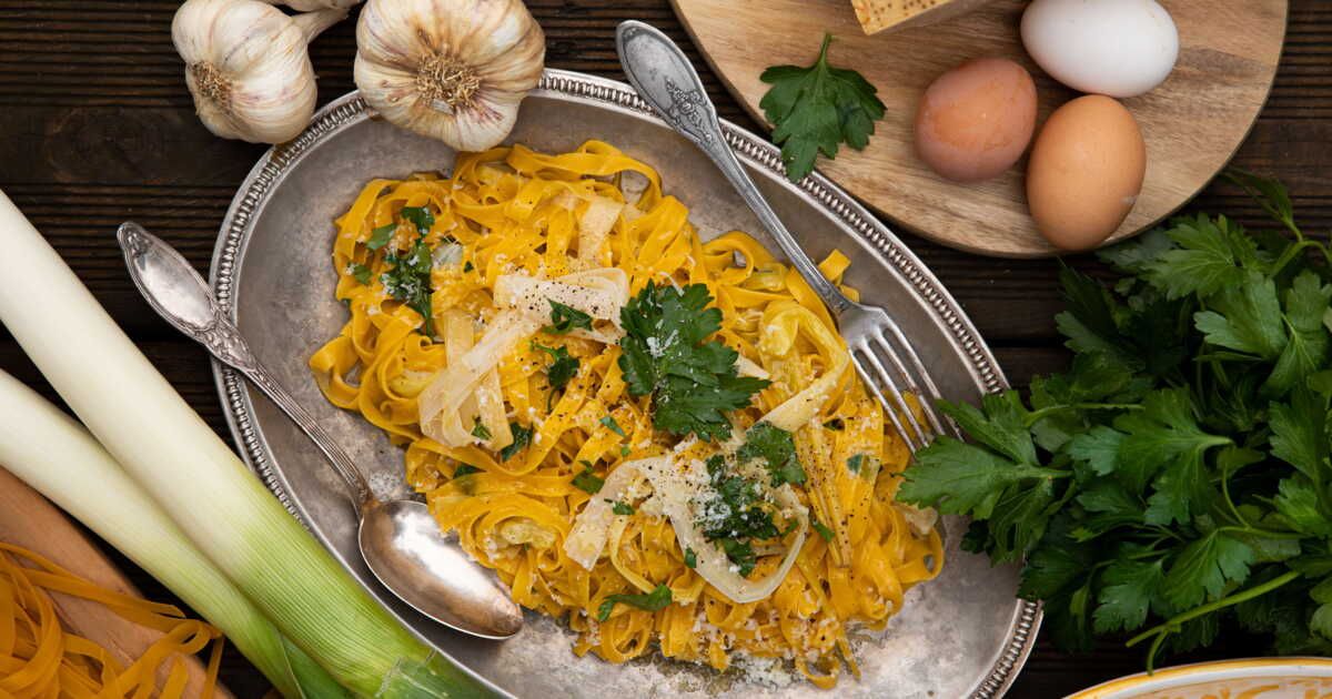- Tagliatelles aux poireaux rôtis
