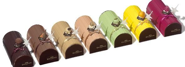La Bûche Chocolat-Mandarine, création de La Maison du Chocolat, allie une texture moelleuse à des notes riches en cacao. Bien que sa forme soit cubique, son goût est empreint de douceur. Elle est constituée d'une mousse truffée au chocolat noir, posée sur un biscuit d'amandes au chocolat et enveloppée d'un glaçage appétissant. Tous les amoureux du chocolat devraient y céder.