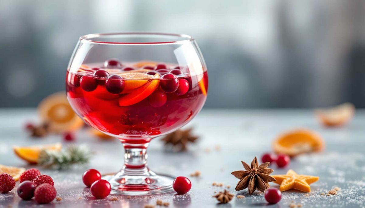 Ce punch de Noël aux cranberries est une tradition des fêtes anglo-saxonnes. Particulièrement convivial, il se savoure idéalement en soirée, en famille ou entre amis, entourés de décorations festives.