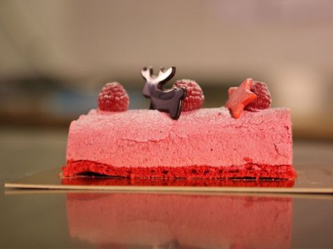 Cette bûche légère est idéale pour ceux qui souhaitent ajouter une touche fruitée et élégante à leur table de Noël. Avec ses couches de framboises et son aspect aérien, elle sera sans aucun doute le point d'orgue de votre dessert.