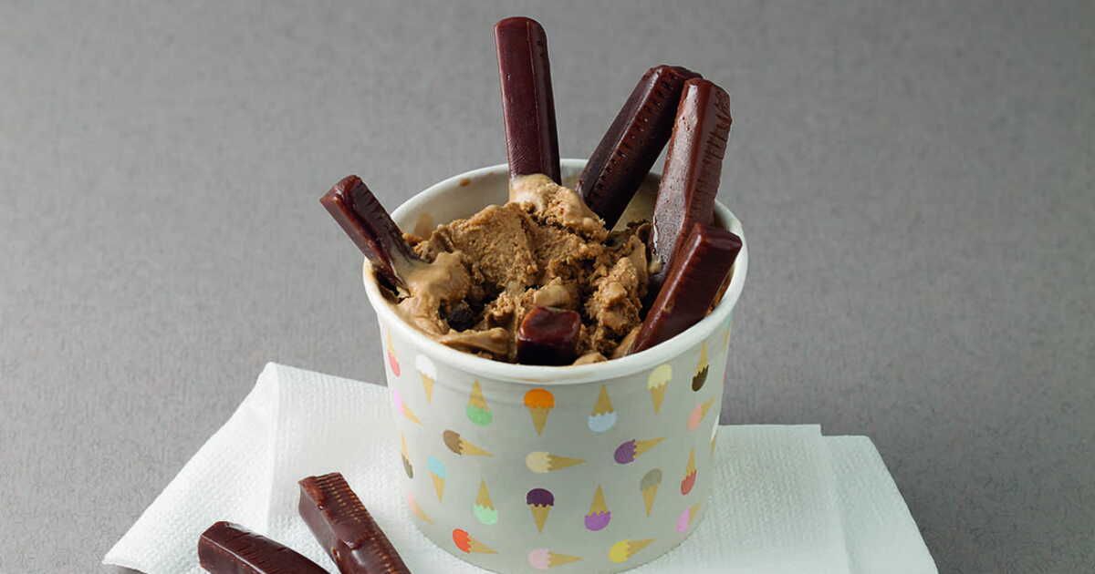 Servez votre glace aux Carambar dans des coupes et décorez avec des morceaux de Carambar pour une touche encore plus gourmande!